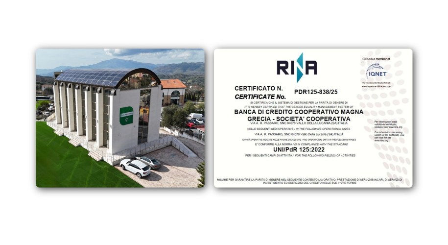 Il riconoscimento di un impegno concreto per un futuro più equo: la BCC Magna Grecia è stata ufficialmente certificata per la Parità di Genere secondo la UNI/PdR 125:2022, un traguardo che premia un percorso strutturato fondato su politiche aziendali inclusive, sostenibili e orientate alla valorizzazione delle persone. La Governance di BCC Magna Grecia annuncia con orgoglio il conseguimento della certificazione, che conferma la volontà della … Continua a leggere BCC Magna Grecia ottiene la Certificazione per la Parità di Genere: un riconoscimento ufficiale per l’impegno concreto rivolto a politiche inclusive e sostenibili