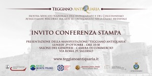 Teggiano Antiquaria , il Che festeggia quest’anno i 20 anni Dalla sua prima edizione , E diventato nel tempo il Più Importante evento Proposto dall’ Antiquariato del Sud Italia : per la valenza degli espositori e per la qualità degli Oggetti in mostra , ma anche perchè rappresenta l’unico appuntamento del settore organizzato in un insuperabile contesto artistico d’epoca . L’evento, in programma nella Città d’Arte del Vallo di Diano , si appresta a proporre l’esposizione di mobili di piccolo e grande antiquariato e difinissimo artigianato , con pezzi di notevole valore, selezionati da alcuni dei più noti antiquari italiani .