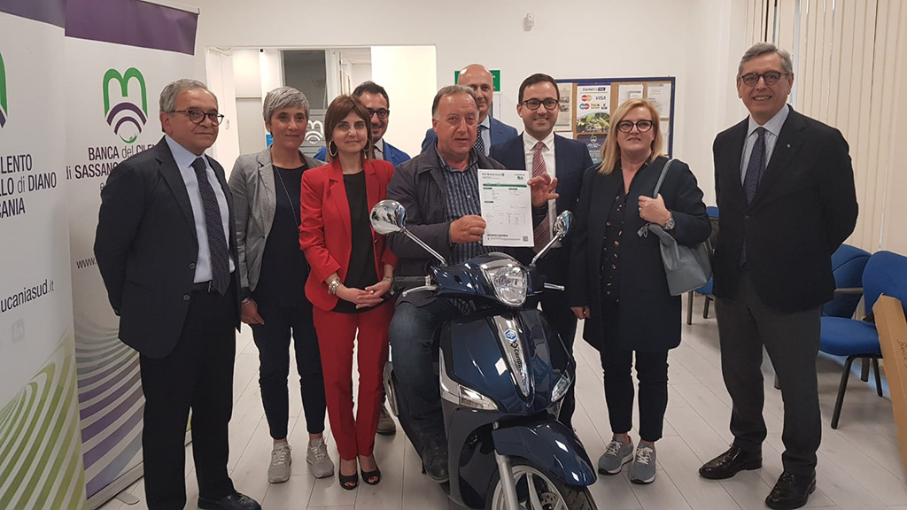 La Banca del Cilento, di Sassano e Vallo di Diano e della Lucania porta fortuna ai propri clienti: a dimostrarlo il signor Aniello Luongo, entrato nella filiale di Sapri a piedi, ed uscito a bordo di uno scooter Piaggio Liberty 125 nuovo di zecca. Insomma alla Banca del Cilento davvero tutto è “POSsibile”, come capitato al signor Aniello, risultato vincitore del concorso nazionale “POSsiamo”, che nei mesi scorsi ha coinvolto circa 22mila partecipanti, tra gli esercenti CartaBCC POS e la loro clientela. Due i premiati in tutta Italia, e tra questi proprio il signor Aniello, rivenditore del Golfo di Policastro nel settore delle calzature, cliente della filiale di Sapri della Banca del Cilento e fruitore di apparecchiature POS acquisite proprio tramite l’Istituto di Credito con sede a Vallo della Lucania.