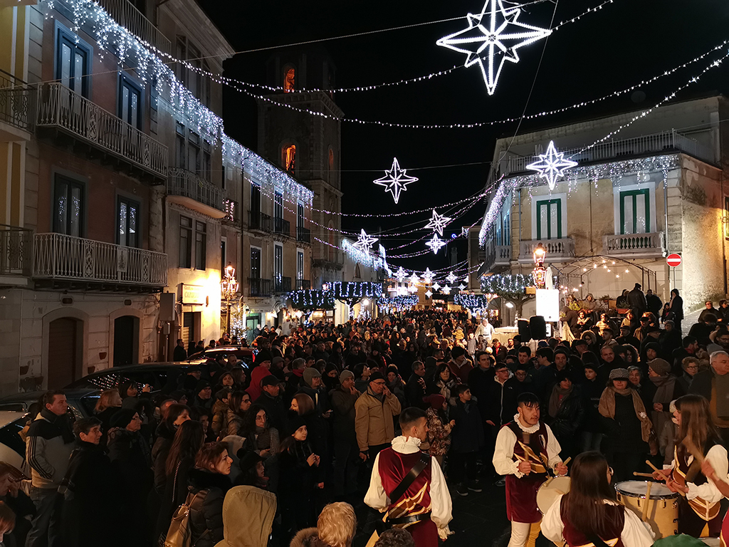 Una bellezza per gli occhi e per l’anima, alla quale contribuiscono in egual misura le stupende luminarie e le meravigliose statue giganti del Presepe dell’Abbazia di Montevergine, distribuite lungo tutta la Piazza. Nella giornata di Santo Stefano il suggestivo percorso ha visto l’omaggio del Corteo Storico partito dal Castello Macchiaroli e guidato da Antonello Sanseverino e dalla sua sposa Costanza da Montefeltro, scesi tra i sudditi per rendere omaggio alla Natività. Uno spettacolo nello spettacolo, dunque, arricchito da Sbandieratori e Musici, Tamburini e Cavalieri Equestri, entusiasmante per le centinaia di persone presenti che hanno ulteriormente riscaldato con i loro applausi l’atmosfera, tanto che In alcuni momenti è sembrato di essere in estate. Ottima la prima, dunque, per Alla Tavola della Principessa Costanza Winter Edition, che è riuscita a riempire Piazza San Cono richiamando nel Vallo di Diano visitatori da ogni dove: Teggiano a Natale come Salerno.