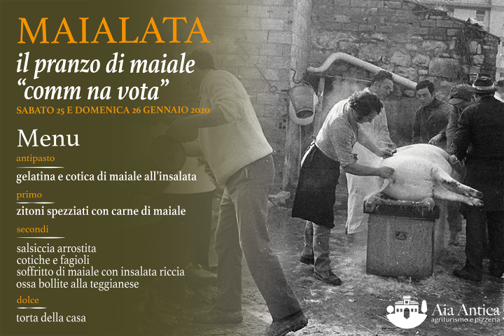 Il maiale è quindi tradizione, è storia, è cultura popolare, patrimonio delle nostre terre. La carne di maiale, infatti, ha reso celebre la nostra tradizione culinaria. È anche per questo motivo che l’Agriturismo Aia Antica di Padula ha deciso di far rivivere per due giorni, a partire da oggi e fino a domani, la “Festa del Maiale”, riproponendo le antiche specialità di carne di maiale fra cui: gelatina e cotica di maiale all’insalata, zitoni spezziati con carne di maiale, salsiccia arrostita, cotiche e fagioli, soffritto di maiale con insalata riccia, ossa bollite alla teggianese, dolce tipico e molto altro.