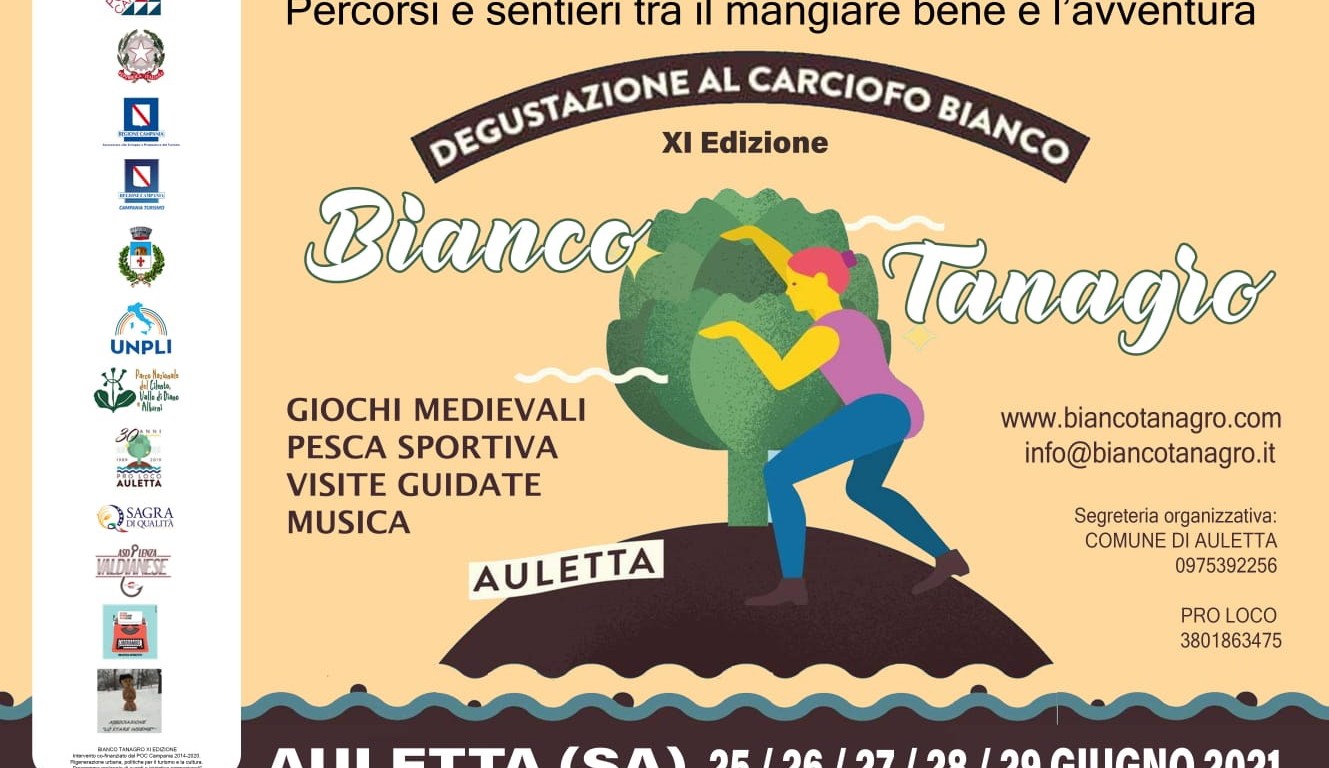 “Bianco Tanagro”, attuato in partnership con l’Associazione dei Produttori del Carciofo Bianco, è una iniziativa ideata dalla Pro Loco di Auletta per valorizzare uno dei prodotti tipici di “eccellenza” del comprensorio, il “Carciofo Bianco del Tanagro”, annoverato nell’elenco dei Prodotti tradizionali della Regione Campania. Quest’anno il Comune di Auletta ha eccezionalmente preso il timone dell’evento per garantirne lo svolgimento, nella massima sicurezza e nel rispetto delle normative anti-Covid ancora in vigore. Il prolungarsi della crisi pandemica ha determinato lo slittamento dell’edizione 2021 di “Bianco Tanagro” al mese di giugno, rispetto al tradizionale calendario che propone l’appuntamento tra la fine del mese di aprile e l’inizio di maggio. Una variazione necessaria, che consente ora di poter tagliare il nastro dell’evento, nonostante le difficoltà che hanno caratterizzato la prima parte dell’anno in Italia e nel mondo. E non poteva esserci momento più opportuno, nella stessa settimana in cui la Regione Campania torna in “Zona Bianca”, potendo quindi godere del protocollo concordato tra governo e regioni che prevede la fine del coprifuoco e il superamento delle limitazioni orarie alla circolazione e alle attività.
