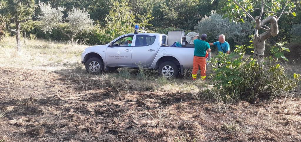 Un incendio si è sviluppato nel territorio del comune di Monte San Giacomo, in località Galotti. Le fiamme sono state innescate da una folta sterpaglia a ridosso della strada e si sono propagate nei terreni privati limitrofi, avvolgendo un vigneto e degli oliveti.