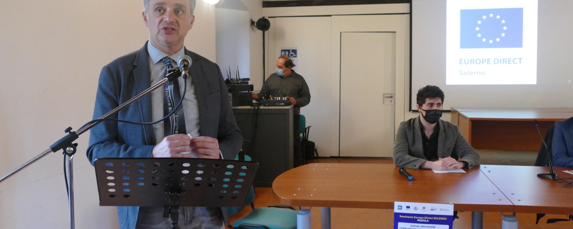 Francesco Cavallone, presidente della Comunità montana Vallo di Diano, non ha fatto mancare il proprio contributo al seminario Europe Direct di Salerno da titolo “Giovani, Aree interne e Piano Nazionale di Ripresa e Resilienza”.