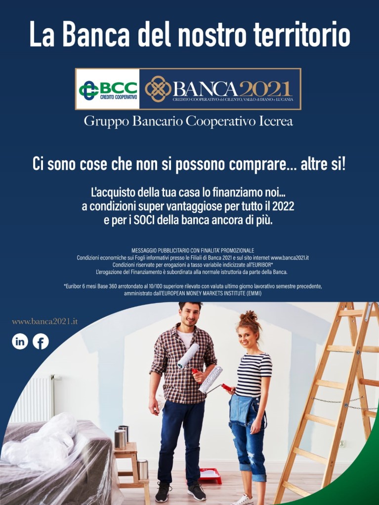 La Banca 2021, Credito Cooperativo del Cilento, Vallo di Diano e Lucania, rilancia il suo impegno al fianco delle comunità della propria area di competenza e per il 2022 avvia una intensa campagna di finanziamenti a tassi agevolati, sia per acquisto o ristrutturazione di abitazioni sia per spese personali e familiari.