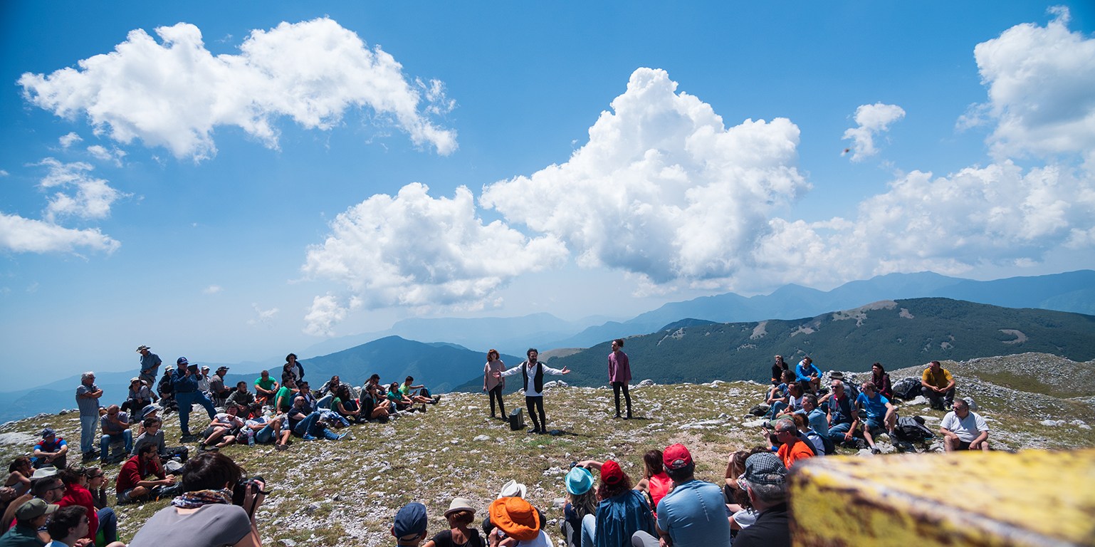 Ci sono emozioni difficili da raccontare attraverso immagini o parole, esperienze più uniche che rare da vivere in prima persona per poter dire “Io c’ero”. È il caso de “Il GIGANTE della Campania”, lo spettacolo teatrale più alto della Regione Campania, che ha per palcoscenico la vetta del Monte Cervati. A 1899 metri di altezza, l’impareggiabile paesaggio naturalistico diventa incantevole scenario dell’evento teatrale gratuito organizzato da La Cantina delle Arti e patrocinato dell’Ente Parco Nazionale del Cilento, Vallo di Diano e Alburni presieduto da Tommaso Pellegrino.