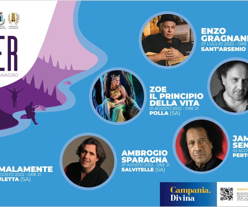 Nell’ambito di TANAGER, LUNGO LE RIVE DEL FIUME TANAGRO si terrà a Polla (SA) domenica 31 luglio 2022 e lunedì 1 agosto una due giorni di musica e teatro ad ingresso libero. L’evento di punta è rappresentato dal concerto gratuito di ENZO AVITABILE e i BOTTARI a POLLA in programma domenica 31 luglio 2022 a partire dalle 21.00 in piazza “mons. Antonio Forte”. Lunedì 1 … Continua a leggere Polla, Avitabile e i Bottari in concerto gratuito. Ambito progetto Tanager.