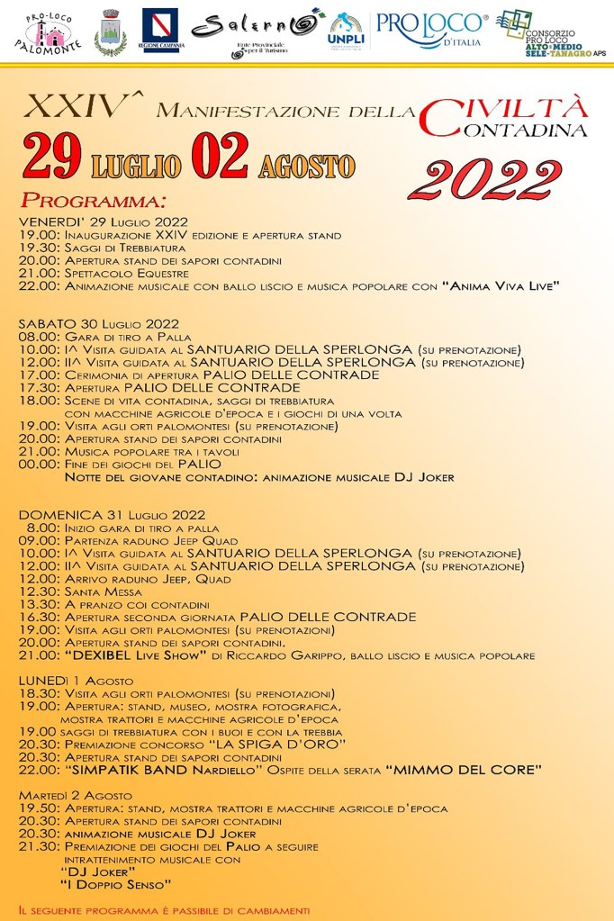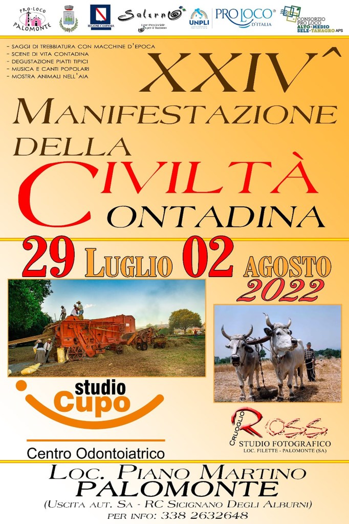 Dopo lo stop obbligatorio del 2020 e del 2021, torna dal 29 luglio al 2 agosto, a Palomonte la Manifestazione della Civiltà Contadina, giunta alla 24^ edizione.