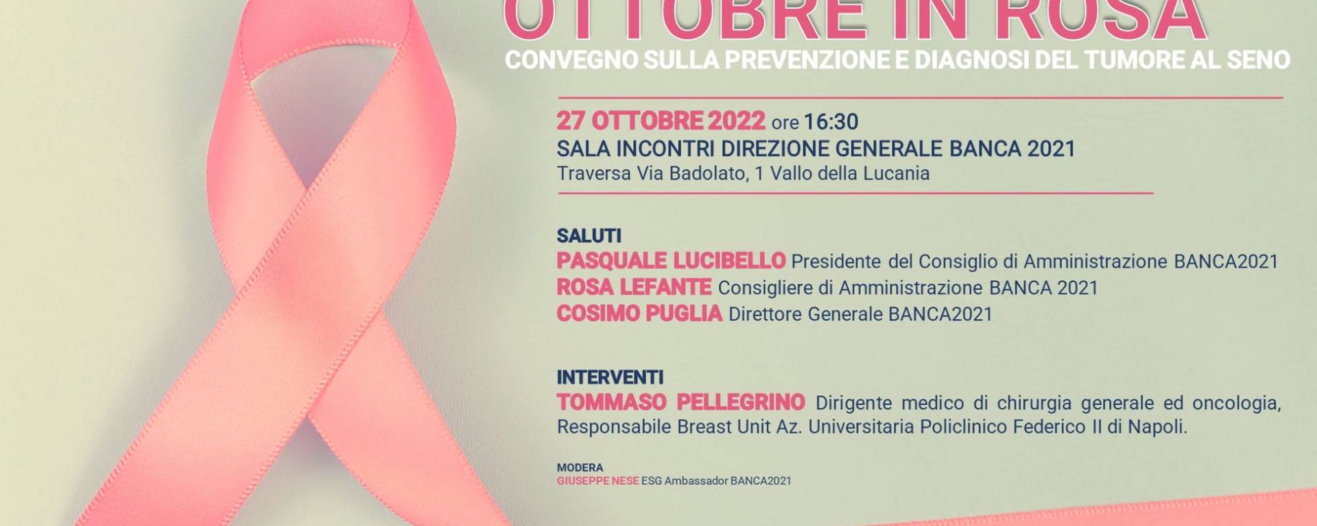 La salute delle donne è al centro dell’iniziativa organizzata dalla Banca 2021 – Credito Cooperativo del Cilento, Vallo di Diano e Lucania nell’ambito di “Ottobre in Rosa”, il mese dedicato alla prevenzione del tumore al seno. Sono tante purtroppo le donne colpite in Italia da questa patologia, il cui tasso di mortalità, però, diminuisce drasticamente attraverso la prevenzione e la diagnosi precoce.