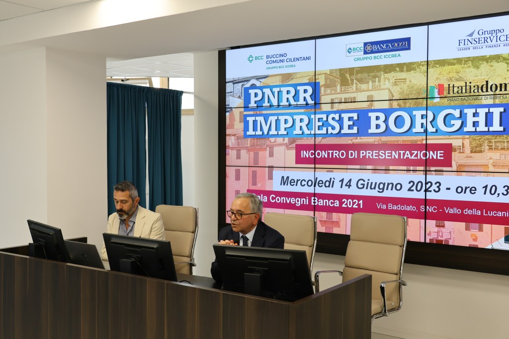 “Già da tempo -ha evidenziato Lucio Alfieri, presidente della BCC di Buccino e dei Comuni Cilentani- i nostri due Istituti di Credito hanno collaborato a diverse iniziative, non solo perché facciamo parte dello stesso Gruppo bancario ma anche perché abbiamo in comune il DNA delle BCC. Il Bando Imprese Borghi è una delle occasioni del PNRR, che riteniamo di fondamentale importanza per l’economia territoriale. Vogliamo che le nostre aziende non perdano queste opportunità, e intensificheremo ancora di più gli eventi divulgativi che, come oggi, vedono interagire insieme Banca 2021 e BCC di Buccino e dei Comuni Cilentani. In attesa delle Assemblee Straordinarie che ci saranno in autunno, avremo modo di illustrare ai Soci la bontà del progetto di aggregazione, che riteniamo possa essere molto utile per il territorio”.