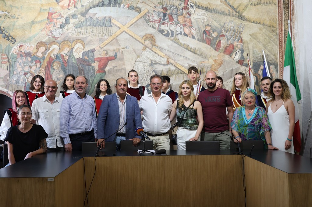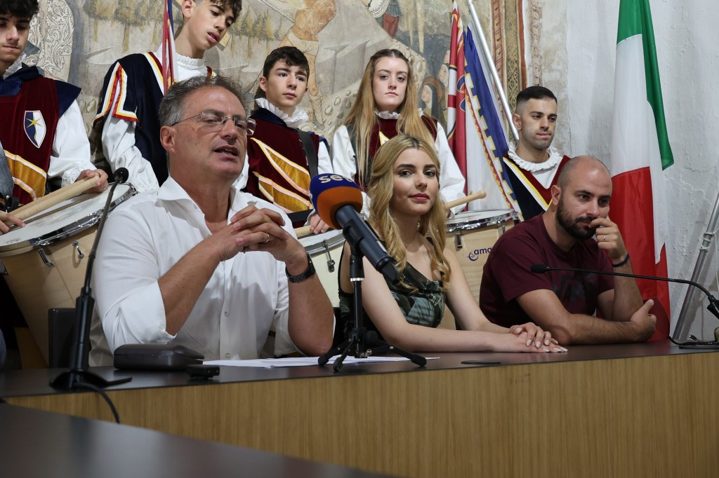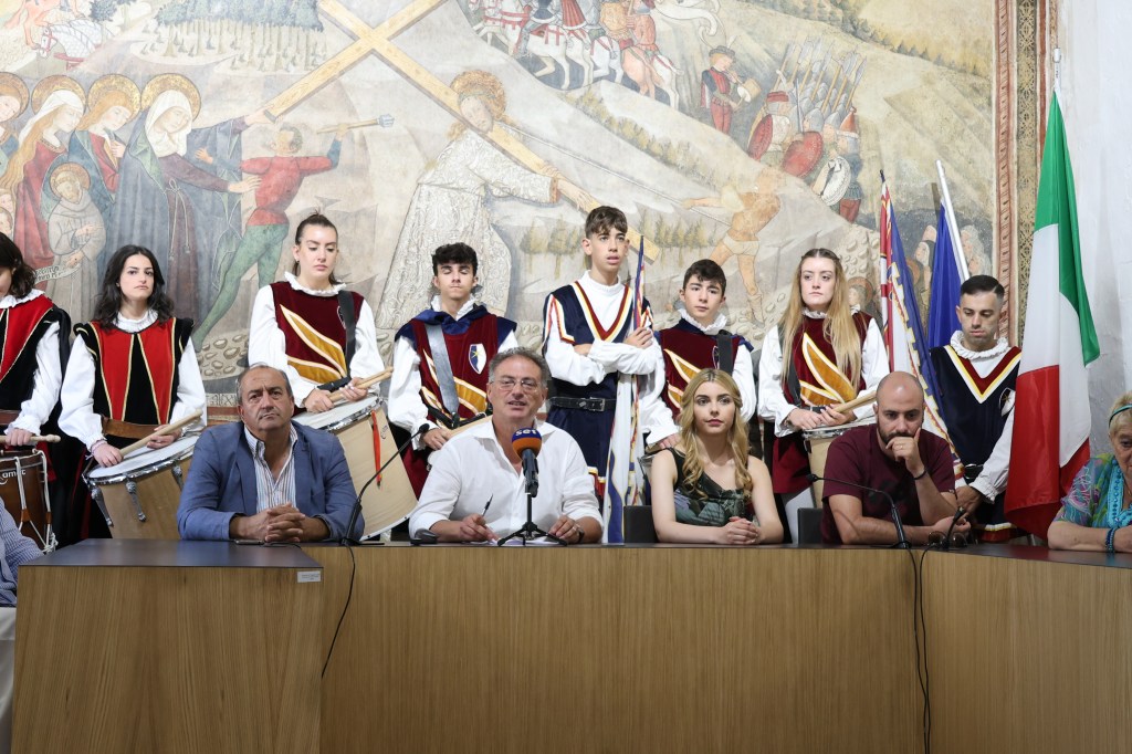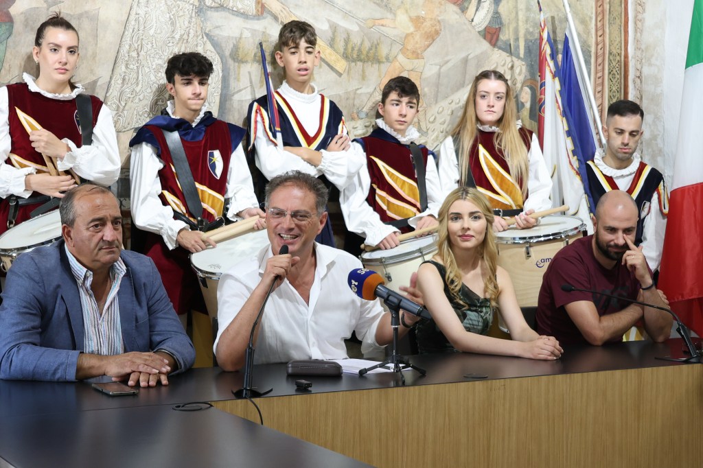 In attesa di rivedere il prossimo anno l’Assalto al Castello, che rappresenta uno dei momenti più acclamati della kermesse, quest’anno la Pro Loco Teggiano vuole lanciare un messaggio importante. Ad annunciarlo, nel corso della conferenza stampa di presentazione svoltasi ieri nella suggestiva location del Complesso della SS. Pietà, il Presidente Biagio Matera. “Dopo anni di sospensione -ha spiegato Matera- non è semplice riorganizzare l’Assalto al Castello, e quindi abbiamo deciso di arrivarci gradualmente, programmando il suo ritorno per il 2024. Allo stesso tempo, però, abbiamo creato qualcosa di speciale appositamente per questa edizione. Si tratta di una spettacolarizzazione teatrale ambientata presso il Castello Macchiaroli, che ripropone la storia dei Sanseverino mostrando come, dopo la Congiura dei Baroni, abbia avuto un epilogo tragico. Ci siamo resi conto che questa vicenda racchiude un insegnamento di grandissima attualità: proprio dal suo epilogo negativo, si sprigiona fortissima l’esigenza di perseguire in ogni modo possibile la pace. Un pensiero, quello della necessità di dialogare invece che di combattere, che oggi sembra essere purtroppo molto controcorrente”.