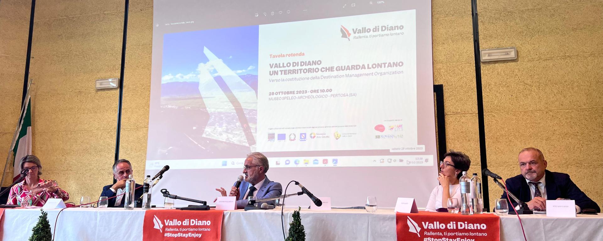 Dopo i saluti istituzionali del sindaco di Pertosa, Domenico Barba, e della presidente della Fondazione MIDA, Rosaria Carfagna, il presidente della Comunità montana, Francesco Cavallone, ha illustrato le azioni messe in campo sul turismo.