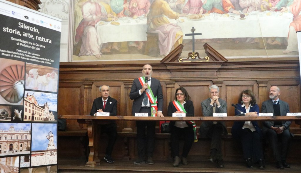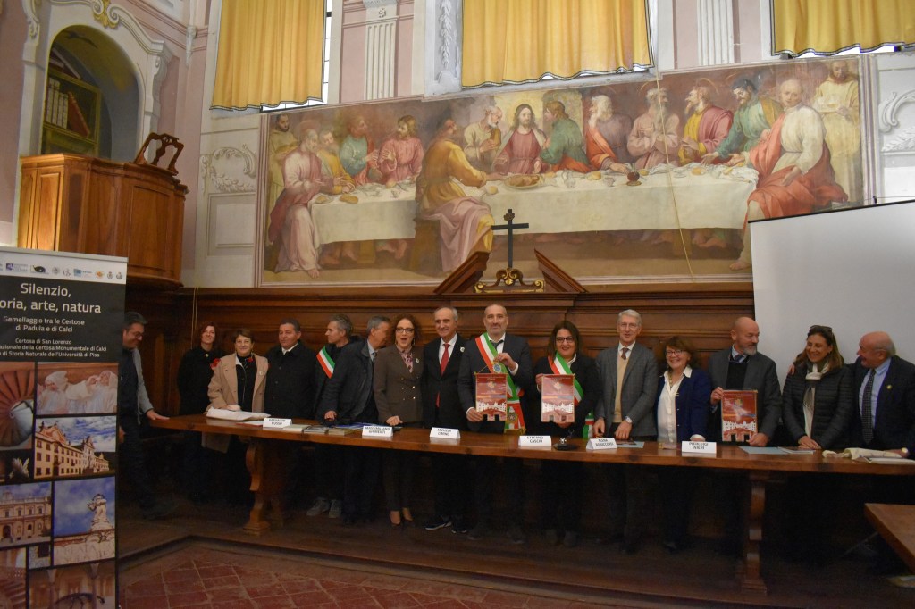 La Sindaca di Padula Michela Cimino e il Sindaco di Calci Massimiliano Ghimenti sabato scorso hanno confermato, nel refettorio della Certosa di Calci, il “Patto di Gemellaggio” tra i due rispettivi complessi monumentali per avviare una promozione integrata delle due Certose, finalizzata alla conoscenza e alla divulgazione delle ricchezze storiche, artistiche e naturalistiche dei due luoghi, tramite scambi culturali, visite guidate e convegni.