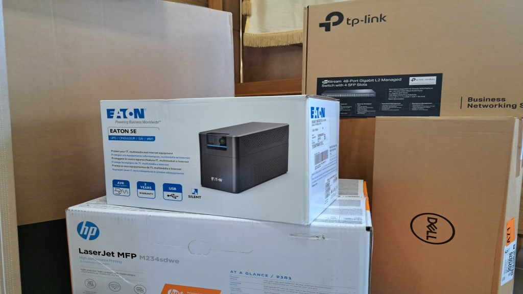 Le moderne attrezzature, tra cui monitor TV per video conferenze, workstation, notebook, PC e stampanti di ultima generazione nonché dispositivi di sicurezza informatica come NA