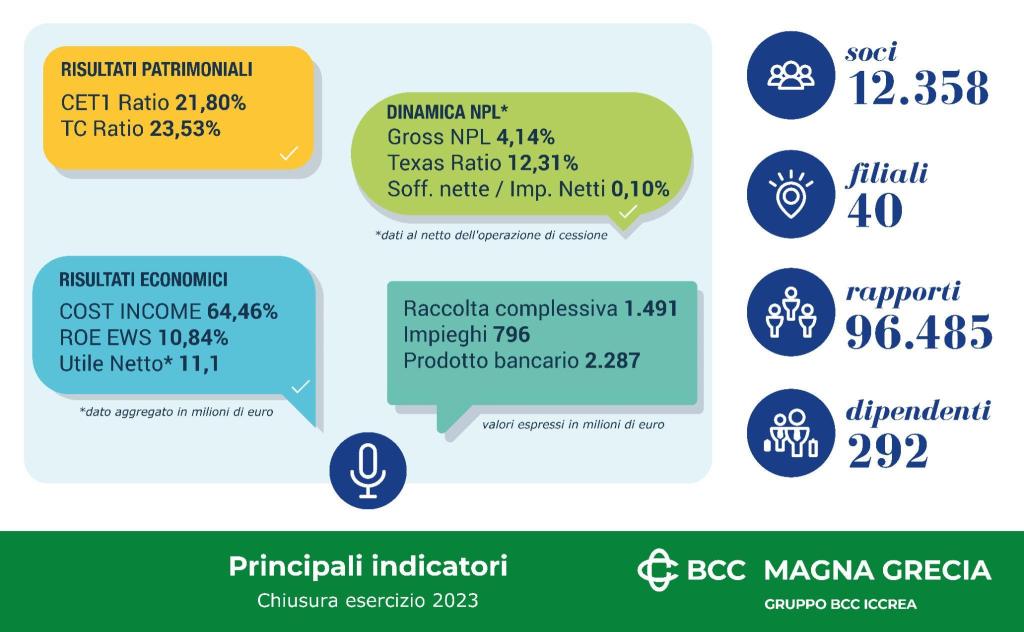 “I dati di Bilancio della BCC Magna Grecia – afferma il Direttore Generale Salvatore Angione – migliori rispetto alle previsioni del Piano Industriale di fusione, confermano la solidità del quadro tecnico aziendale della Banca. Questi risultati sono il frutto di una gestione oculata e di soluzioni strategiche coerenti rispetto all’evoluzione del contesto competitivo e dell’impegnativo quadro normativo di riferimento. La Banca continua a sostenere le proprie comunità dimostrando il suo impegno per lo sviluppo dell’economia locale”.