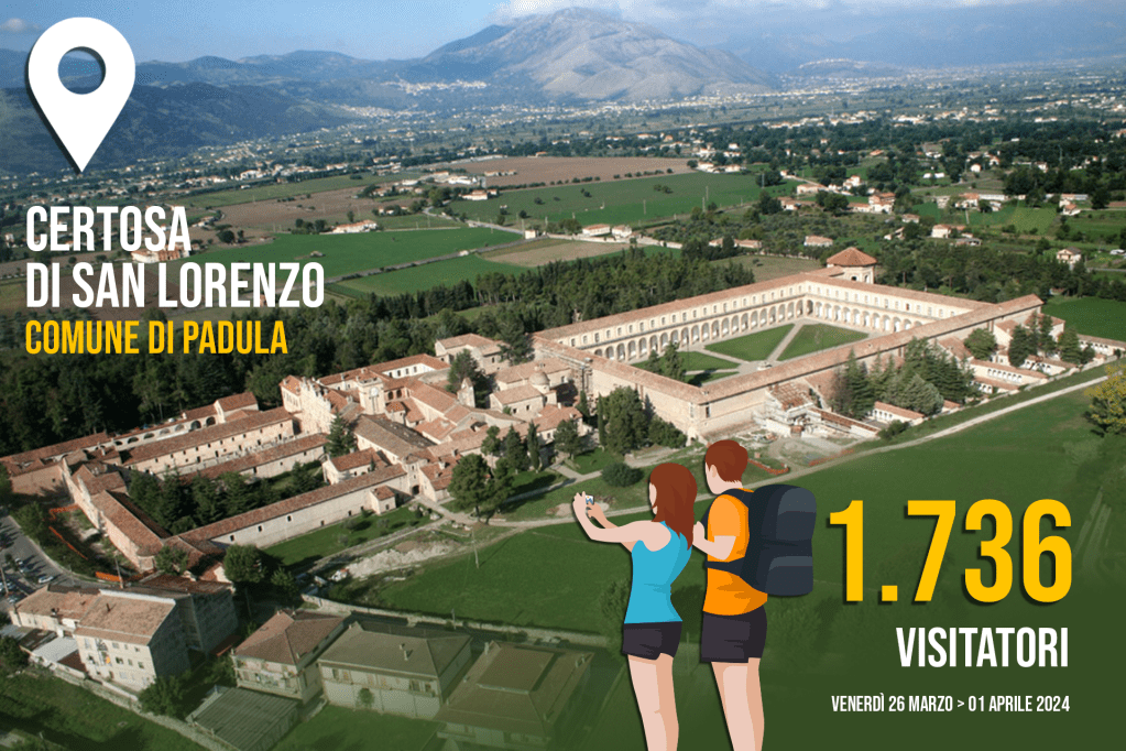 Il dato più alto si è registrato a Pasquetta con 1.122 presenze. Ma in totale sono state 1.736 le persone che hanno raggiunto la cittadina padulese per visitare il più vasto complesso monastico dell’Italia Meridionale, Patrimonio Mondiale dell’Umanità dell’Unesco, nonché uno dei più interessanti monumenti in Europa per magnificenza architettonica e copiosità di tesori artistici.