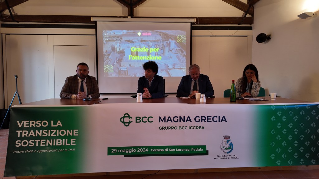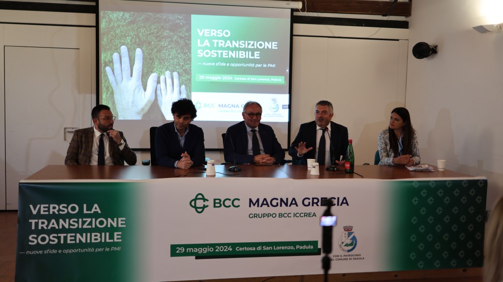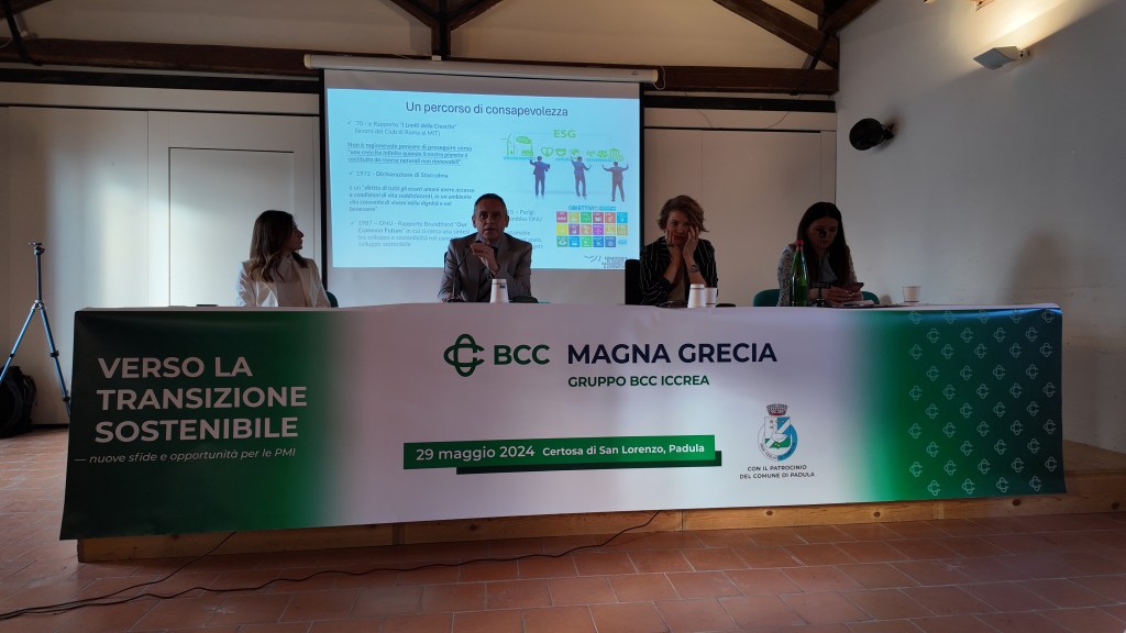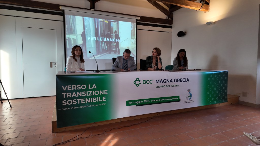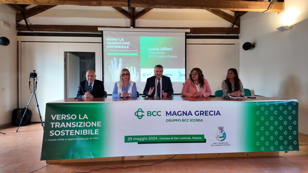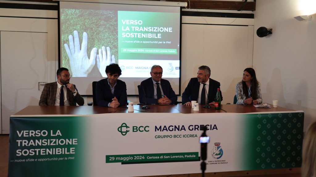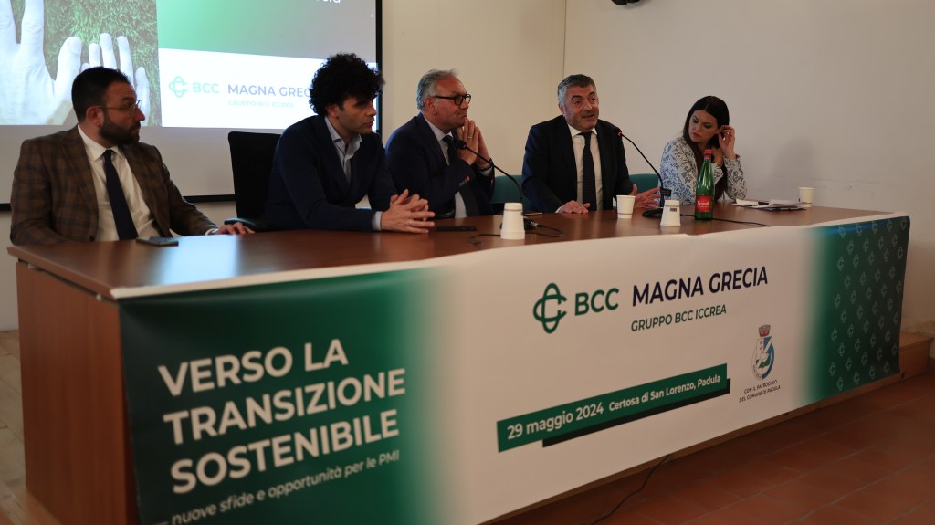 Il Gruppo BCC Iccrea ha manifestato la consueta attenzione e vicinanza alle iniziative della BCC Magna Grecia attraverso la partecipazione all’incontro di Padula di Felicita De Marco, responsabile Group Sustainability & ESG strategy. “La trasformazione sostenibile è la grande trasformazione del nostro tempo, e le Banche di Credito Cooperativo come la BCC Magna Grecia -ha detto la De Marco- hanno un ruolo determinante nell’accompagnare le PMI dei propri territori nel contesto di questa trasformazione. Le aziende in questa fase hanno bisogno prima di tutto di consapevolezza, e l’incontro di questa sera è una importante occasione per far comprendere i motivi di questo processo, che non deve essere inteso come imposizione normativa ma come programmazione strategica. Le imprese che attiveranno questo percorso avranno infatti un miglior posizionamento”.