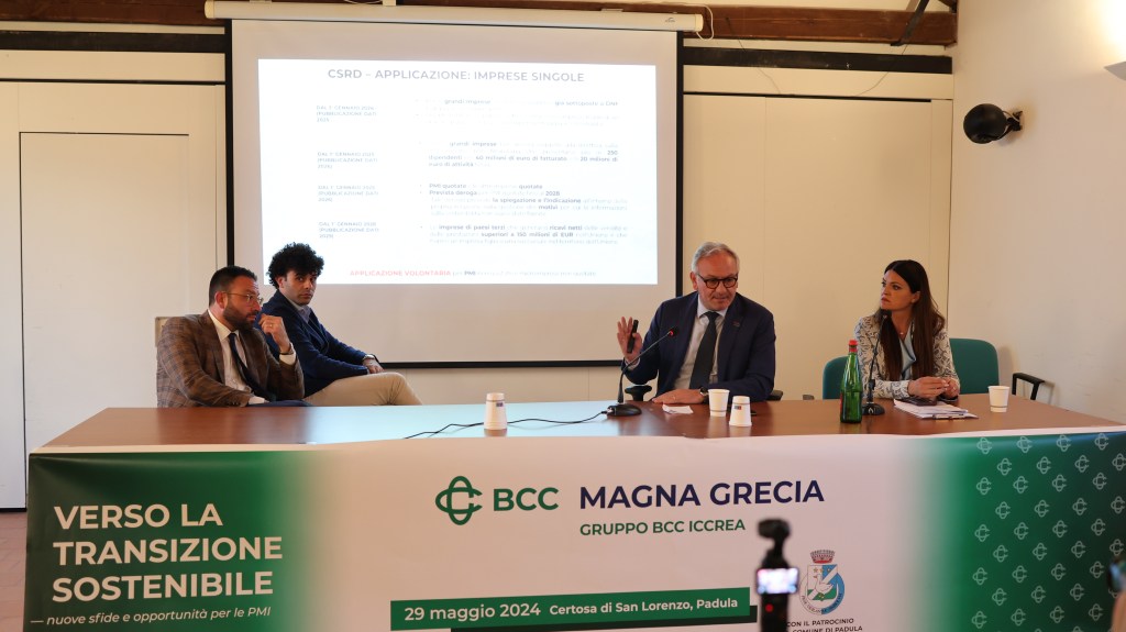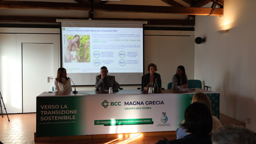 “La BCC Magna Grecia ripone la massima attenzione sui temi legati alla sostenibilità -ha poi affermato Rosa Lefante, componente del CdA con delega in ambito ESG- che sono ormai all’ordine del giorno anche in ambito economico. Abbiamo organizzato questo convegno per rendere partecipi le aziende del cambiamento in atto, che va recepito al più presto e nel modo giusto per avere un impatto positivo anche sulle loro performance”.
