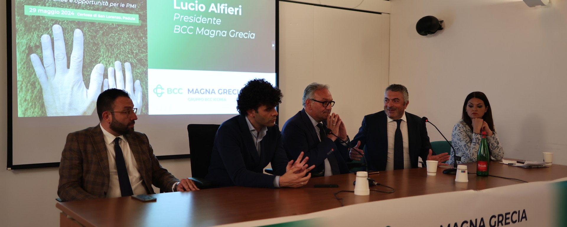 Nell’evocativa location della Certosa di San Lorenzo, l’incontro, moderato dalla giornalista Raffaella Giaccio, si è aperto con i saluti del sindaco di Padula Michela Cimino, che ha ringraziato la BCC Magna Grecia per aver scelto il monumento certosino come sede per affrontare questioni di grandissima attualità.