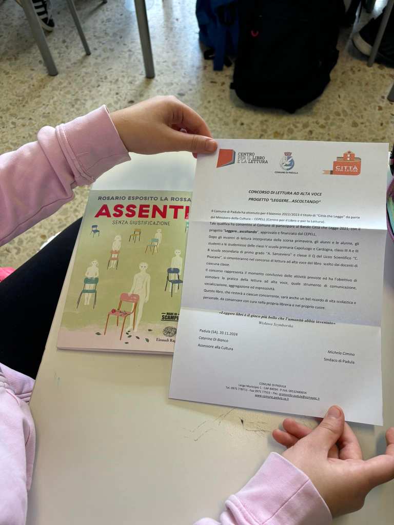 Il Comune di Padula, che ha ottenuto per il biennio 2022-2023 il titolo di “Città che Legge” da parte del Ministero della Cultura – CEPELL (Centro per il Libro e per la Lettura) in collaborazione con l’ANCI (Associazione Nazionale Comuni Italiani), si riconferma protagonista nel panorama culturale per una serie di iniziative che coinvolgono scuole, biblioteche e associazioni locali. Tra le attività di punta figura il Progetto “Leggere…ascoltando”, che ha preso il via la scorsa primavera con un ciclo di incontri di lettura interpretata, nei quali protagoniste sono state le scuole elementari, medie ed il biennio del Liceo Scientifico “C. Pisacane”.