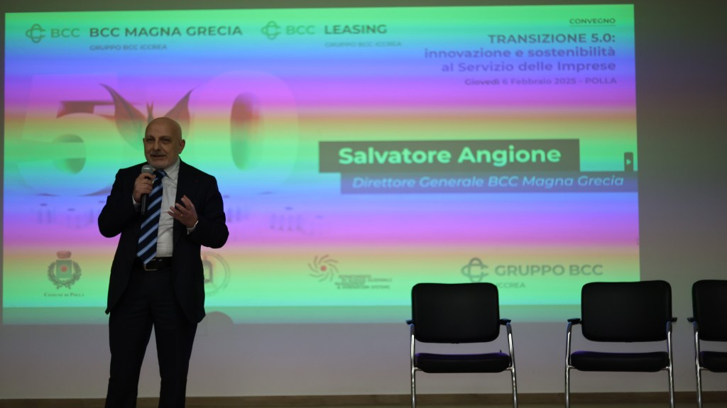“Il nostro compito non è solo fornire accesso al credito, ma accompagnare le aziende in un percorso di crescita sostenibile, affiancandole nella gestione degli investimenti e delle opportunità fiscali. Vogliamo creare una vera e propria cultura dell’innovazione, perché chi investe oggi in digitalizzazione e sostenibilità avrà un vantaggio competitivo domani”. Nelle parole del direttore generale Salvatore Angione è racchiuso il senso del convegno dal titolo “Transizione 5.0: innovazione e sostenibilità al servizio delle imprese”, promosso dalla BCC Magna Grecia in collaborazione con l’Ordine dei Dottori Commercialisti ed Esperti Contabili di Sala Consilina e con il patrocinio del Comune di Polla.