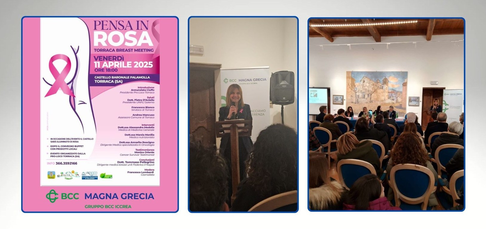 La BCC Magna Grecia ha sostenuto con convinzione l’importante iniziativa: “Crediamo -sottolineano dall’Istituto di Credito- che la salute, la prevenzione e la vicinanza alle persone siano valori fondamentali della nostra missione. Non a caso, un momento carico di emozione è stata la testimonianza della nostra collega Monica Oriente, che ha raccontato la sua battaglia e la sua vittoria contro il cancro. Monica è la nostra leonessa, un esempio straordinario di forza di volontà, resilienza e positività. Il suo sorriso e il suo coraggio sono per tutti noi una fonte di ispirazione”.