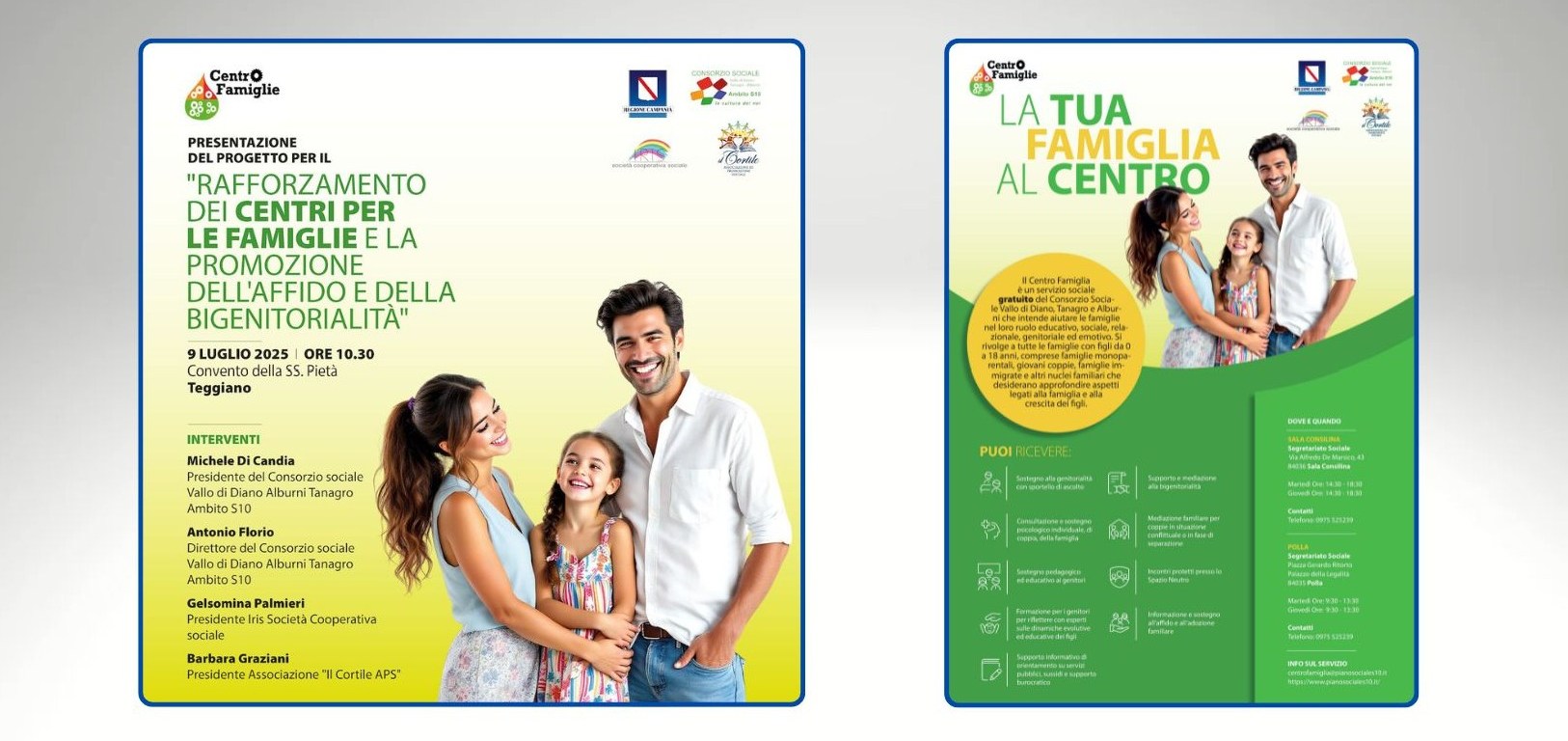 Il prossimo 9 luglio, alle ore 10:30, presso il Convento della SS. Pietà a Teggiano, saranno presentati i nuovi servizi attivati dai Centri Famiglia del Consorzio Sociale Vallo di Diano Tanagro Alburni – Ambito S10, grazie al sostegno della Regione Campania.
