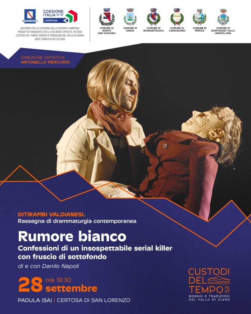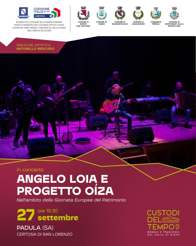 Il Custodi del Tempo Fest è promosso dal Comune di Padula insieme ai Comuni di Monte San Giacomo, Sanza, Buonabitacolo, Casalbuono e Montesano sulla Marcellana, con il sostegno della Regione Campania nell’ambito dell’Accordo di Coesione 2021–2027.