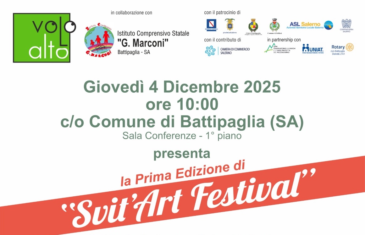 Prende il via giovedì 4 dicembre la prima edizione dello Svit’Art Festival, rassegna che intreccia cultura, arte e responsabilità sociale, utilizzando la creatività quale strumento di apprendimento e cambiamento individuale e collettivo, di benessere e di opportunità lavorativa.